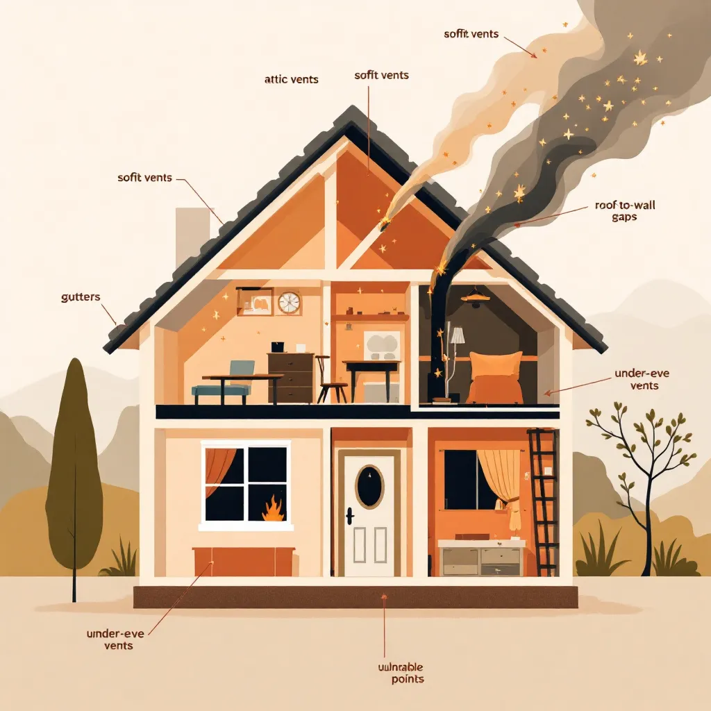 Traditional vents allow embers to enter attics and crawl spaces. Once inside, embers can ignite insulation or framing materials. Replacing vulnerable vents with ember-resistant or fire-resistant vent systems helps prevent ignition from ember intrusion.